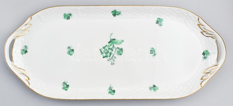 Beschreibung: Herendi zöld virágmintás szendvicses készlet, 2. oszt. jelzéssel, hibátlan, h: 37 cm, d: 16,5 cm
