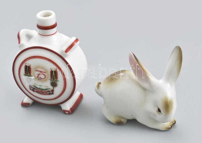 Beschreibung: Zsolnay nyúl + kulacs, kulacson 1938-as évszámmal, jelzéssel, kis kopással, m: 6-8 cm