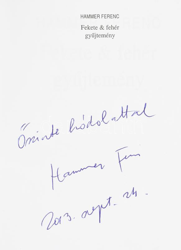 Hammer Ferenc: Fekete & fehér gyűjtemény. A szerző, Hammer Ferenc (1963-) szociológus által DEDIKÁLT! Pozsony, 2007, Kalligram. Kiadói kartonált papírkötés, kiadói papír védőborítóval.
