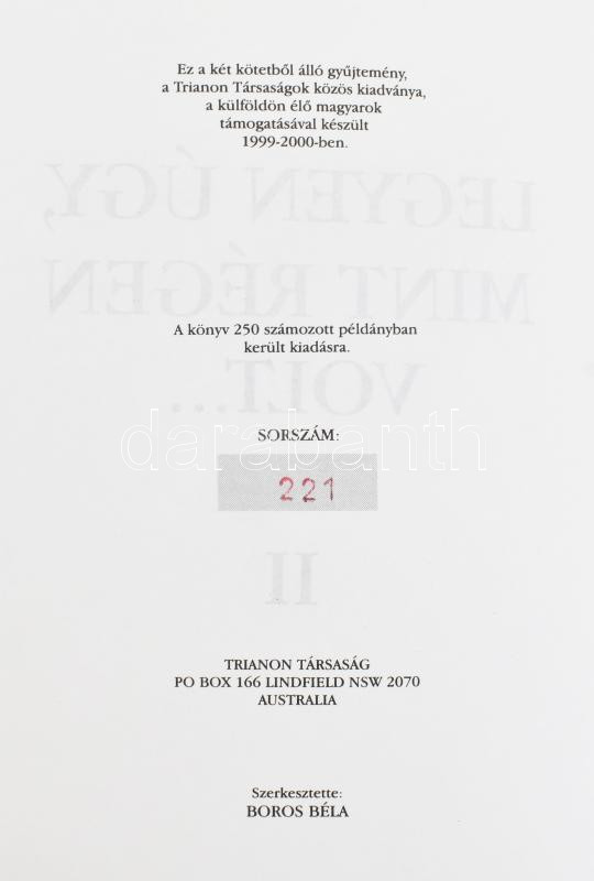 Legyen úgy, mint régen volt... II. Szerk.: Boros Béla. Sydney,1999, Trianon Társaság. Kihajtható térképpel, rajta vármegyék címereivel. Kiadói papírkötés. Számozott (221./250) példány.