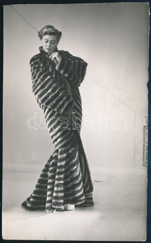 cca 1950-60 Christian Dior divatfotó, Lénárt Angéla magyar modellel. Jelzés nélkül. Széle vágott. 13x8 cm / ca 1950-60 Christian Dior fashion photo, with Angéla Lénárt Hungarian model. Unsigned. Cut on the side. 13x8 cm