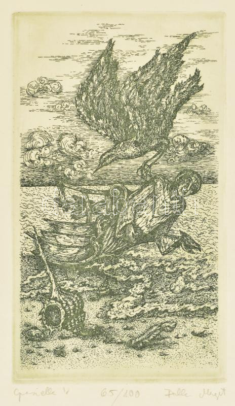 Beschreibung: Balla Margit (1947-): Gabriella V. Rézkarc, papír. Jelzett. Számozott (65/100). Lapon felületi törésnyommal. 20×12 cm