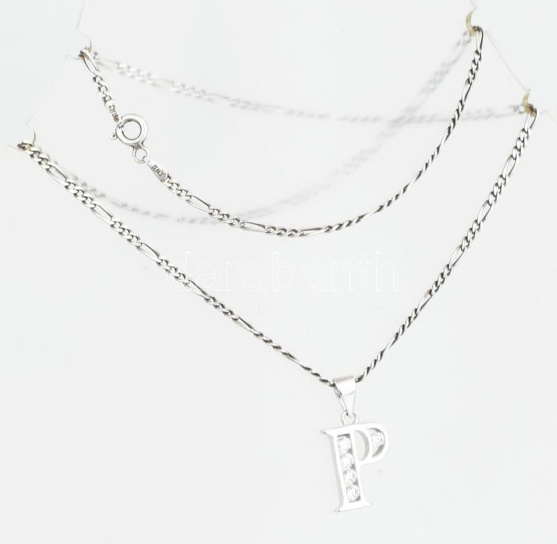 Beschreibung: Ezüst (Ag) figaro nyaklánc köve "P" függővel, jelzett, h: 45 cm, 2,2×1,2 cm, bruttó: 5,9 g