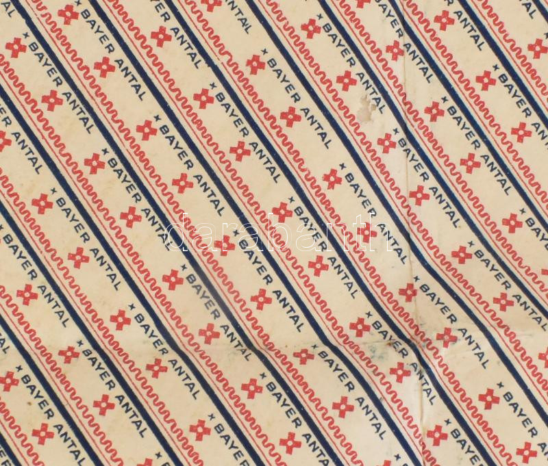 Bayer Antal reklám csomagolópapír ív. Art deco, 1930-40 körül, hajtásn... https://www.darabanth.com/de/452-Fernauktion/452.0/Kunst-Dokumente-andere-Sammelgebiete/Werbungen~1000001/Bayer-Antal-reklam-csomagolopapir-iv-Art-deco-1930-40-korul-hajtasnyomokkal-szele-kisse~II3011093