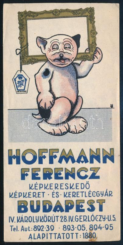 Beschreibung: cca 1920-1930 Hoffmann Ferencz képkereskedő, Bonzo kutya számolócédula, kis folttal