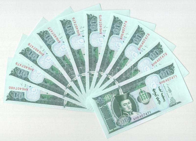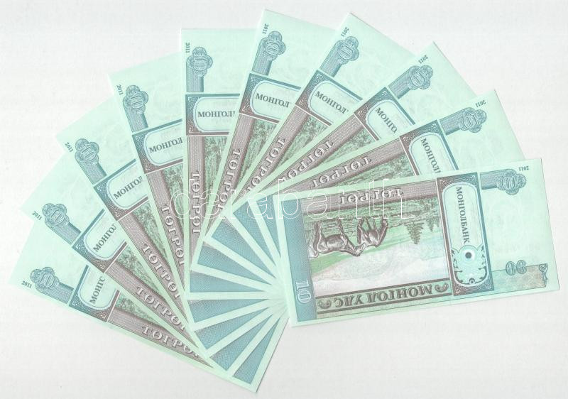 Mongólia 2011. 10T (10x) sorszámkövetők "AH 6407471 - AH 6407480" T:UN... https://www.darabanth.com/de/452-Fernauktion/452.0/Numismatik/Weltweit-Banknoten~2500013/Mongolia-2011-10T-10x-sorszamkovetok-AH-6407471-AH-6407480-T-UNC-AU-Mongolia-2011-10~II3008690