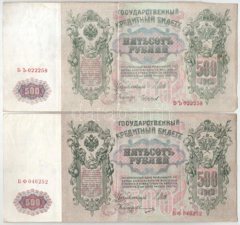 Orosz Birodalom 1912-1917 (1912). 500R (3x) Szign.: Shipov T:F Russian... https://www.darabanth.com/de/452-Fernauktion/452.0/Numismatik/Weltweit-Banknoten~2500013/Orosz-Birodalom-1912-1917-1912-500R-3x-Szign-Shipov-T-F-Russian-Empire-1912-1917-1912~II3012982