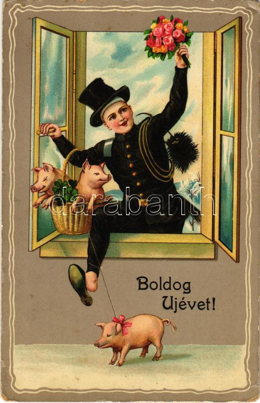 1909 Boldog Újévet / New Year greeting art postcard with chimney sweep... https://www.darabanth.com/de/453-Fernauktion/453.0/Ansichtskarten/GruC39Fkarten-Feste~1000113/1909-Boldog-Ujevet-New-Year-greeting-art-postcard-with-chimney-sweeper-and-pigs-litho-EK~II3016117