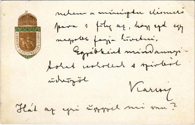 Beschreibung: 1915 Nemzeti Áldozatkészség Szobor segélylap / WWI Austro-Hungarian K.u.K. military charity fund, golden Emb. (EK)