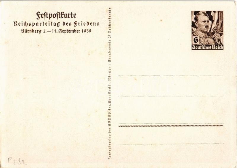 1939 Reichsparteitag Nürnberg. Festpostkarte. Reichsparteitag des Friedens / Nuremberg Rally. NSDAP German Nazi Party propaganda, swastika; 6 Ga. Adolf Hitler (EK)