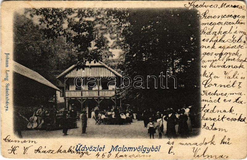 1902 Szászkabánya, Németszászka, Sasca Montana; Malomvölgy, vendéglő, nyaraló. Johann Lang kiadása / "Susara" Mühlthal / valley, restaurant, villa (EB)