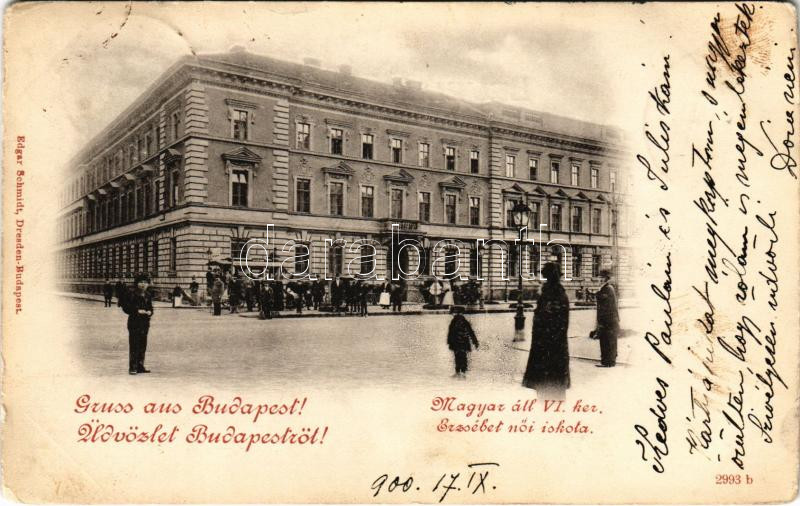 Beschreibung: 1900 Budapest VI. Andrássy úti Erzsébet női iskola (ma Pesti Barnabás szakközépiskola) (kopott sarkak / worn corners)