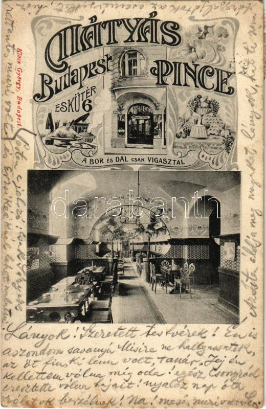 1906 Budapest V. Mátyás Pince belső: A bor és dal csak vigasztal. Eskü... https://www.darabanth.com/de/453-Fernauktion/453.0/Ansichtskarten/Ungarn~1000004/1906-Budapest-V-Matyas-Pince-belso-A-bor-es-dal-csak-vigasztal-Esku-ter-6-Klosz-Gyorgy-Art~II3015618