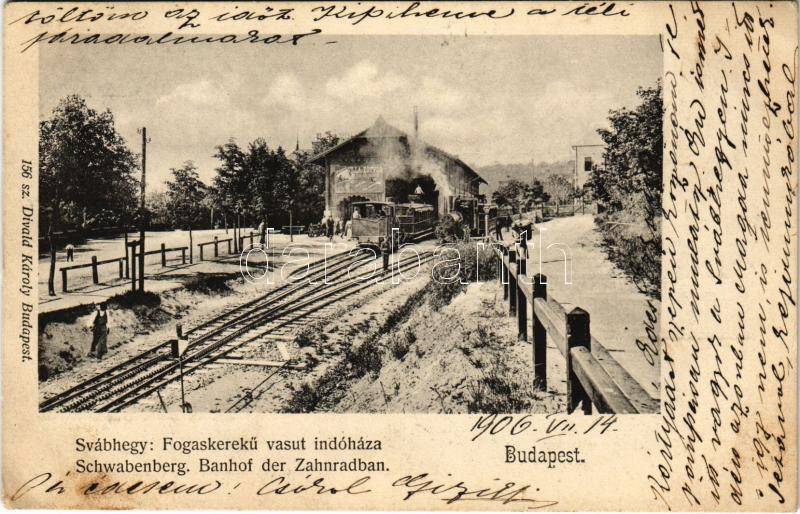 1906 Budapest XII. Svábhegy fogaskerekű vasút indóháza, vasútállomás, ... https://www.darabanth.com/de/453-Fernauktion/453.0/Ansichtskarten/Ungarn~1000004/1906-Budapest-XII-Svabhegy-fogaskereku-vasut-indohaza-vasutallomas-vonat-Villa-Eotvos-reklam~II3015586