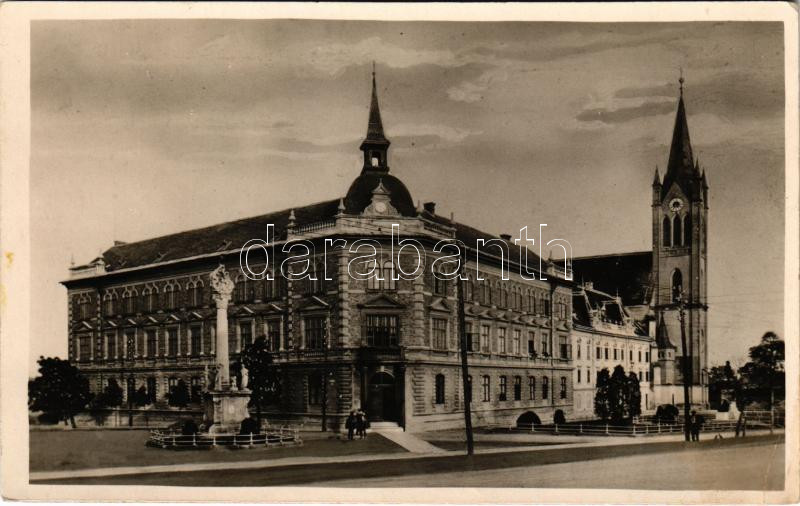 Beschreibung: 1944 Keszthely, Reálgimnázium és római katolikus templom (EK)