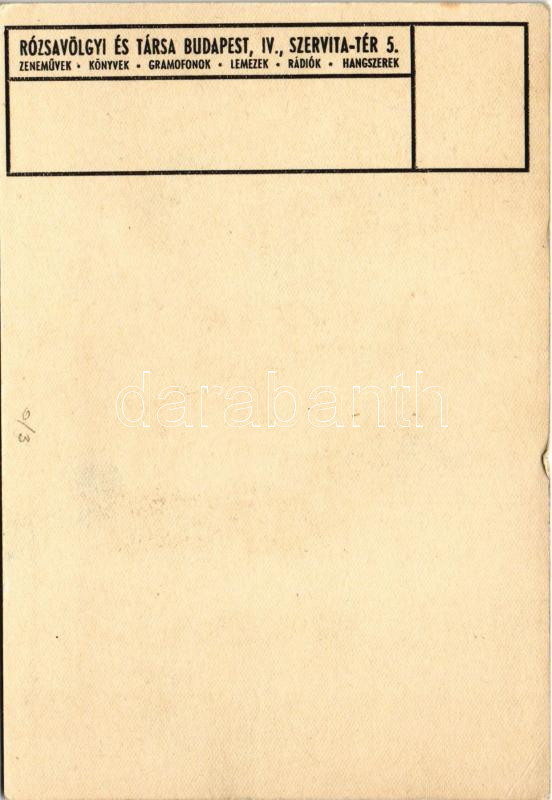 Rózsavölgyi és Társa zeneművek, könyvek, rádiók, hangszerek, gramofonok és lemezek. Szervita tér 5. reklám / Hunagrian musical works, books, radios, musical instruments, gramophones and records advertisement (EK)