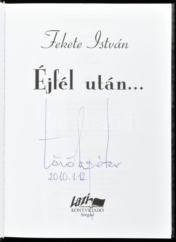 Fekete István: Éjfél után. Szeged, 2009, Lazi. Kiadói kartonált kötés,... https://www.darabanth.com/de/453-Fernauktion/453.0/Bucher/Bucher-Andere-kuriositaten~1500035/Fekete-Istvan-Ejfel-utan-Szeged-2009-Lazi-Kiadoi-kartonalt-kotes-elejeben-tulajdonosi~II3021269