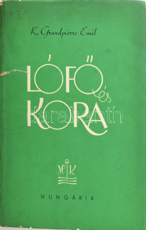 Kolozsvári Grandpierre Emil: Lófő és kora. (Bp., 1946), Hungária, 122 p. Első kiadás. Kiadói papírkötés, a borítón és a lapok egy részén kisebb szakadással.