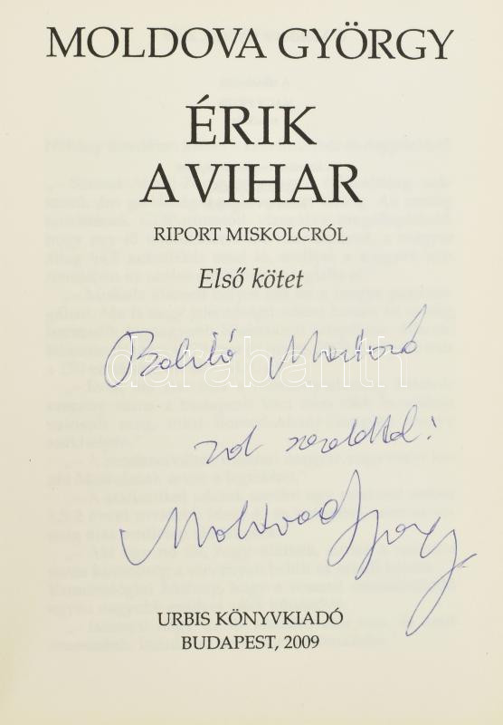 Moldova György: Érik a vihar. Riport Miskolcról Bp., 2009, Urbis. Kiad... https://www.darabanth.com/de/453-Fernauktion/453.0/Bucher/Bucher-Andere-kuriositaten~1500035/Moldova-Gyorgy-Erik-a-vihar-Riport-Miskolcrol-Bp-2009-Urbis-Kiadoi-kartonalt-papirkotes-A~II3022465