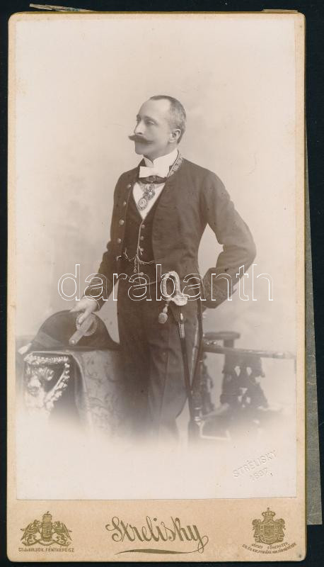 1897 Férfi kitüntetéssel karddal, keményhátú fotó Strelisky budapesti ... https://www.darabanth.com/de/453-Fernauktion/453.0/Fotografie/Foto~500023/1897-Ferfi-kituntetessel-karddal-kemenyhatu-foto-Strelisky-budapesti-mutermebol-21x11-5-cm~II3017882