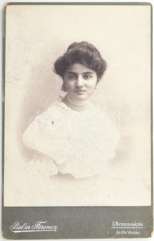 1906 Női portré, keményhátú fotó Babar Ferenc nyíregyházi műterméből, ... https://www.darabanth.com/de/453-Fernauktion/453.0/Fotografie/Foto~500023/1906-Noi-portre-kemenyhatu-foto-Babar-Ferenc-nyiregyhazi-mutermebol-16-5x10-5-cm~II3021051