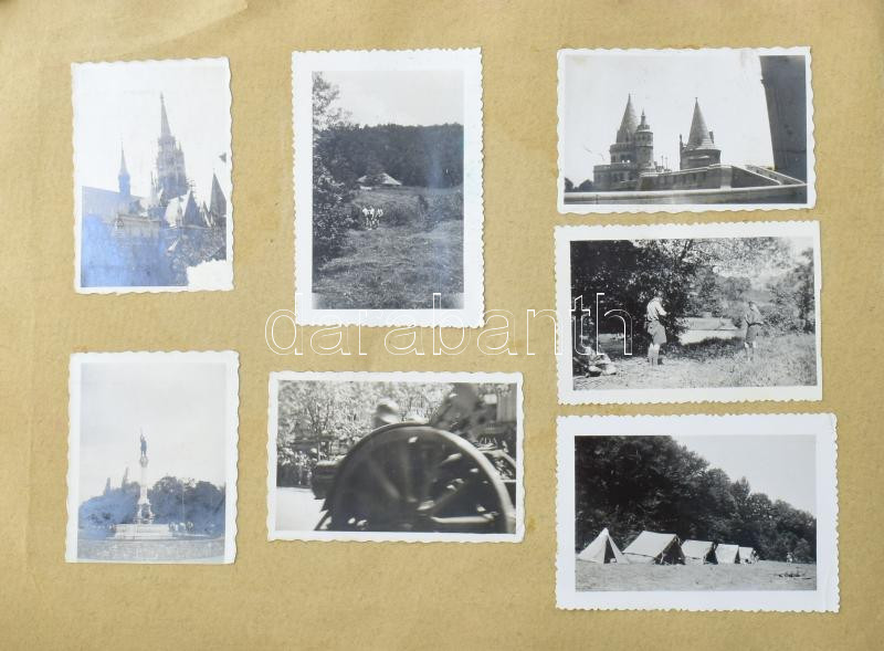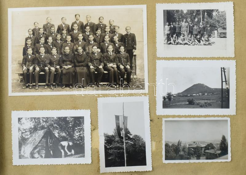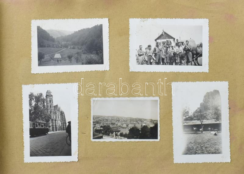 Beschreibung: Családi fotóalbum mintegy 200 különböző méretű beragasztott fotóval, események, katonai, Felvidék, stb.