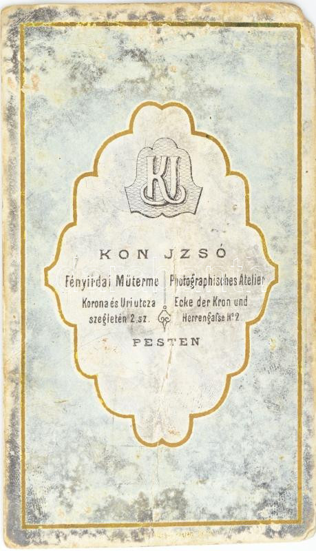 Beschreibung: cca 1865 Egész alakos férfiportré, keményhátú fotó Kon Izsó pesti műterméből, sérült, 10,5×6 cm