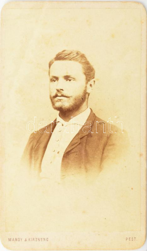 cca 1865 Férfiportré, keményhátú fotó Mandy és Kirsveng pesti műterméb... https://www.darabanth.com/de/453-Fernauktion/453.0/Fotografie/Foto~500023/cca-1865-Ferfiportre-kemenyhatu-foto-Mandy-es-Kirsveng-pesti-mutermebol-10-5x6-5-cm~II3020326