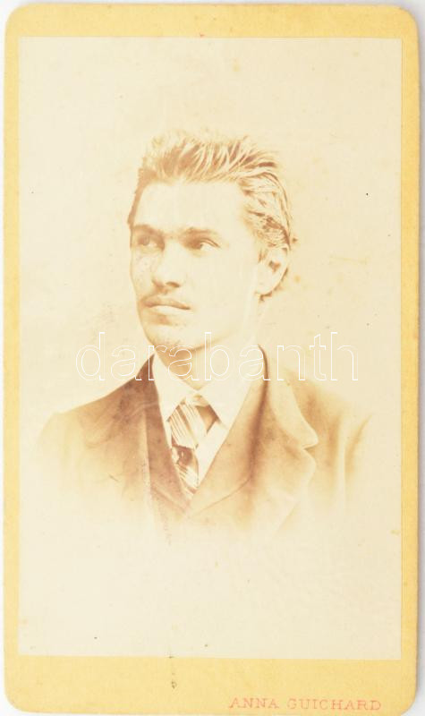cca 1870 Férfiportré, keményhátú fotó Guichard Anna pesti műterméből, ... https://www.darabanth.com/de/453-Fernauktion/453.0/Fotografie/Foto~500023/cca-1870-Ferfiportre-kemenyhatu-foto-Guichard-Anna-pesti-mutermebol-10-5x6-5-cm~II3020347