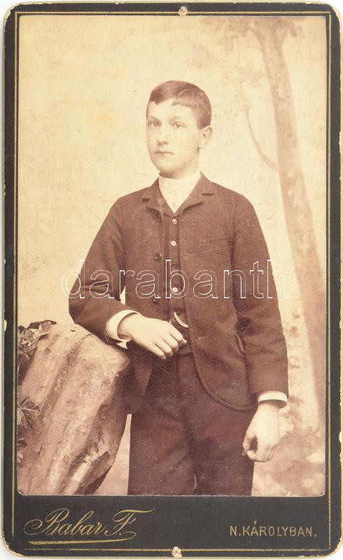 cca 1885 Fiúportré, keményhátú fotó Babar Ferenc (Nagykároly, Nyíregyh... https://www.darabanth.com/de/453-Fernauktion/453.0/Fotografie/Foto~500023/cca-1885-Fiuportre-kemenyhatu-foto-Babar-Ferenc-Nagykaroly-Nyiregyhaza-mutermebol-10-5x6-5-cm~II3020543