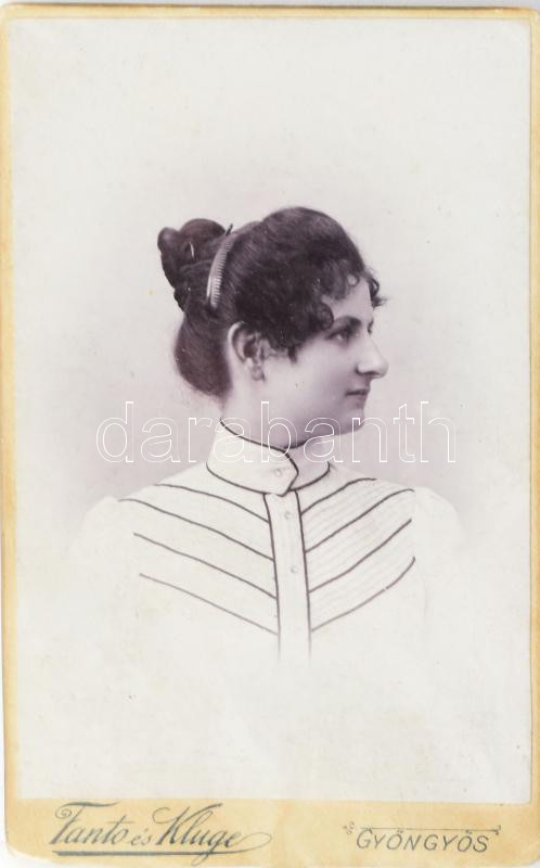 cca 1900 Fiatal hölgy portréja, keményhátú fotó Fanto és Kluge gyöngyö... https://www.darabanth.com/de/453-Fernauktion/453.0/Fotografie/Foto~500023/cca-1900-Fiatal-holgy-portreja-kemenyhatu-foto-Fanto-es-Kluge-gyongyosi-mutermebol-vizitkartya-~II3020870