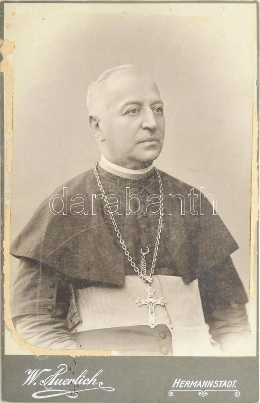 Beschreibung: cca 1905 Pap portréja, keményhátú fotó Wilhelm Auerlich nagyszebeni műterméből, sérülésekkel, 16,5×10,5 cm