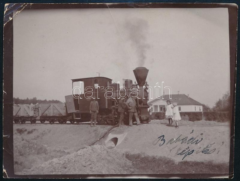 cca 1910 Babádi építés, gőzmozdony, feliratozott fotó, felületén törés... https://www.darabanth.com/de/453-Fernauktion/453.0/Fotografie/Foto~500023/cca-1910-Babadi-epites-gozmozdony-feliratozott-foto-feluleten-toresnyomok-8-5x11-cm~II3017879