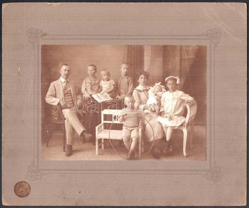 cca 1910 Hatgyermekes házaspár családi fotója, kartonra kasírozott, na... https://www.darabanth.com/de/453-Fernauktion/453.0/Fotografie/Foto~500023/cca-1910-Hatgyermekes-hazaspar-csaladi-fotoja-kartonra-kasirozott-nagymeretu-foto-Chrien~II3017936