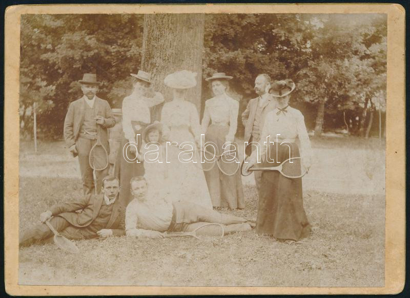 cca 1910 Teniszezők, keményhátú fotó, 12×16 cm https://www.darabanth.com/de/453-Fernauktion/453.0/Fotografie/Foto~500023/cca-1910-Teniszezok-kemenyhatu-foto-12x16-cm~II3017870