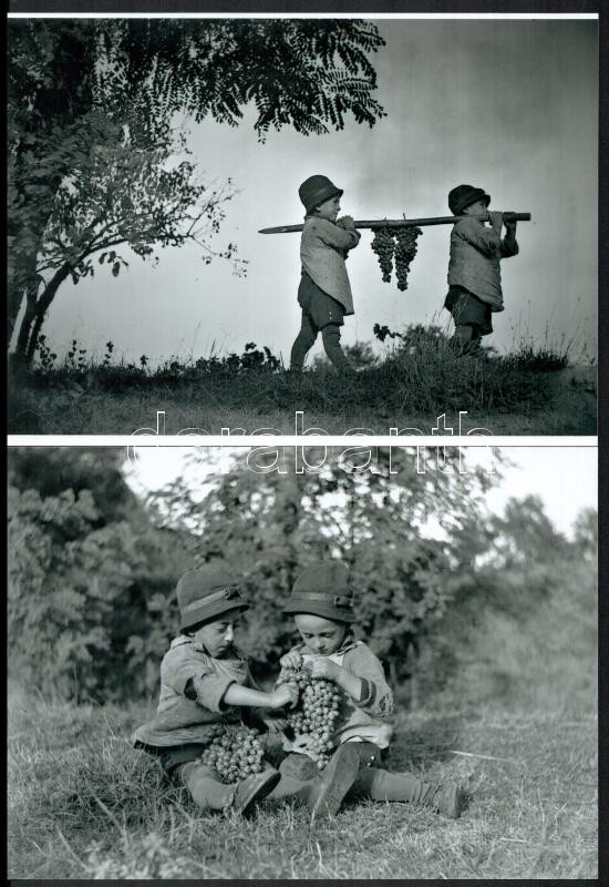 cca 1925 Bercel (Nógrád megye), habzsi-dőzsi szüret idején, Kerny István (1879-1963) budapesti fotóművész hagyatékából, eredeti üveglemez negatívokról készült 2 db modern nagyítás, 15x21 cm