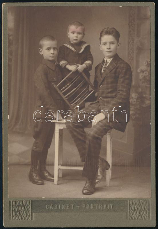 Beschreibung: cca 1925 Budapest, Erdős Sándor fényképészeti műtermében készült, keményhátú, vintage fotó (a tesók első ,,számítógépe"), 16,2x11 cm