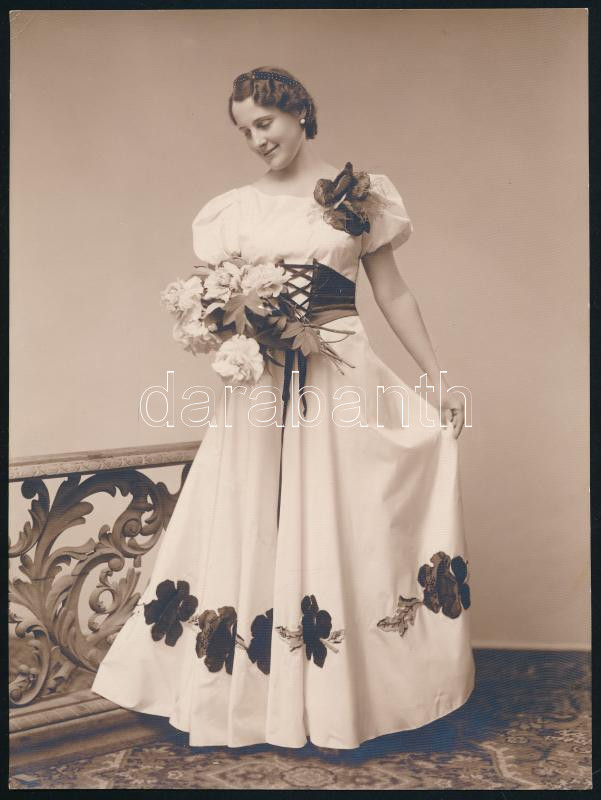 cca 1930-1940 Hölgy báli ruhában, fotó, sarkán törésnyom, 23×17 cm https://www.darabanth.com/de/453-Fernauktion/453.0/Fotografie/Foto~500023/cca-1930-1940-Holgy-bali-ruhaban-foto-sarkan-toresnyom-23x17-cm~II3017860