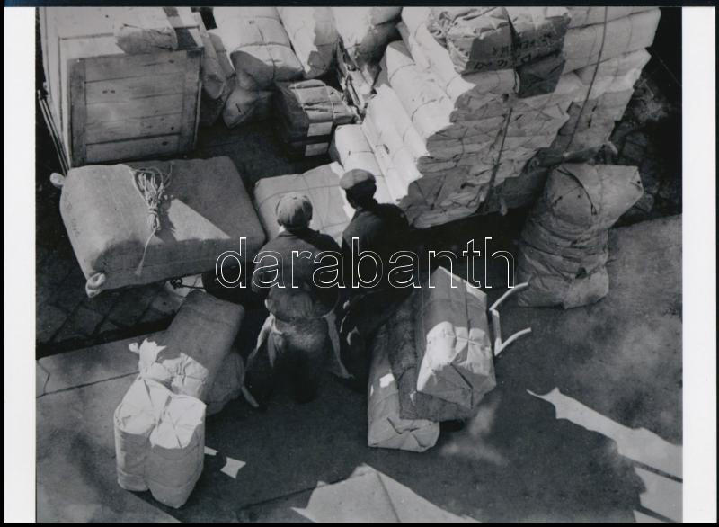 cca 1932 Seiden Gusztáv (1900-1992) budapesti (később londoni) fotóművész felvétele (Rakodók), valószínűleg a Vigyázó Ferenc utcában készült, Kinszki Imre irodájának ablakából, ahonnan Kinszki is több ilyen témájú felvételt készített munkássága során, (Kinszki és Seiden barátok voltak, együtt alapították a Modern Magyar Fényképezők Társaságát, amelyet a belügyminiszter ezen a néven betiltott, alig néhány hónappal a megalakulás után), 1 db modern nagyítás, 15x21 cm