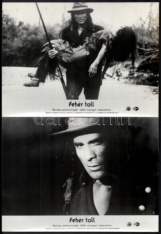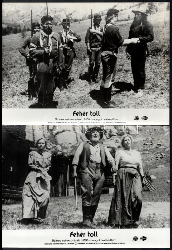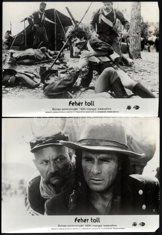 cca 1983 ,,Fehér toll" című NDK - mongol kalandfilm jelenetei és szereplői, 6 db vintage produkciós filmfotó ezüst zselatinos fotópapíron, a használatból eredő (esetleges) kisebb hibákkal, 18x24 cm