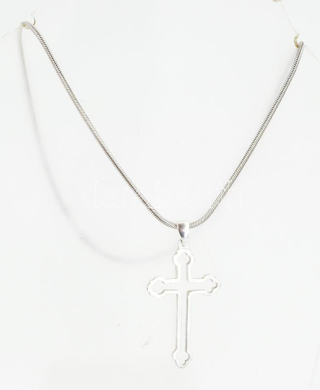 Beschreibung: Ezüst (Ag) kígyó nyaklánc áttört kereszt medállal, jelzett, h: 42 cm, 5×2 cm, nettó: 14,3 g