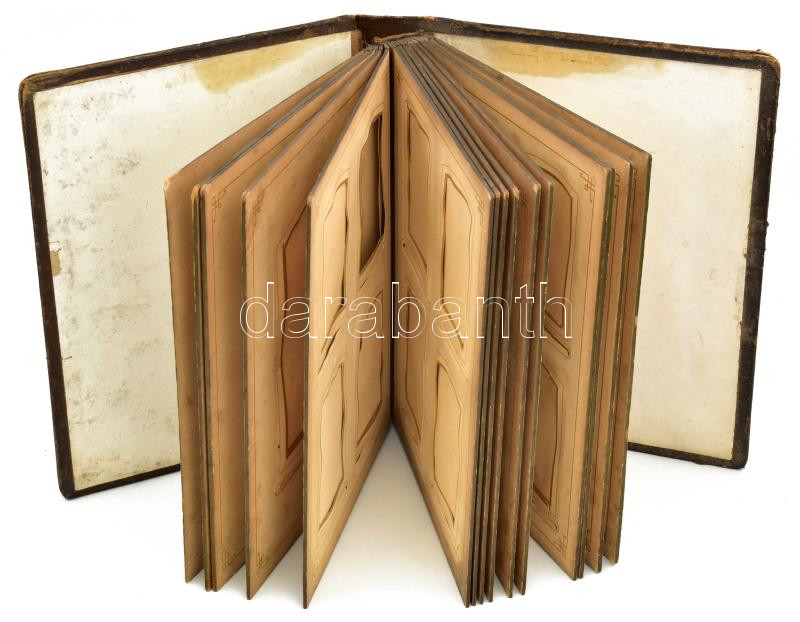 Antik fényképalbum, dekoratív historizáló félvászon kötésben, sérült b... https://www.darabanth.com/de/453-Fernauktion/453.0/Kunst-Dokumente-andere-Sammelgebiete/Antik~500008/Antik-fenykepalbum-dekorativ-historizalo-felvaszon-kotesben-serult-boritoval-es-kotessel-foltos~II3021029