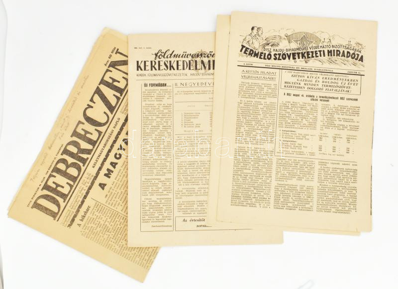 1955-1956 Hajdú-Bihar megyei termelőszövetkezeti újságok, 4 db + 1930 ... https://www.darabanth.com/de/453-Fernauktion/453.0/Kunst-Dokumente-andere-Sammelgebiete/Drucksachen~1500013/1955-1956-Hajdu-Bihar-megyei-termeloszovetkezeti-ujsagok-4-db-plus-1930-Debreczen-Keletmagyarorszagi~II3017159