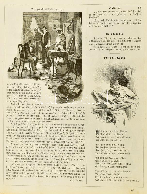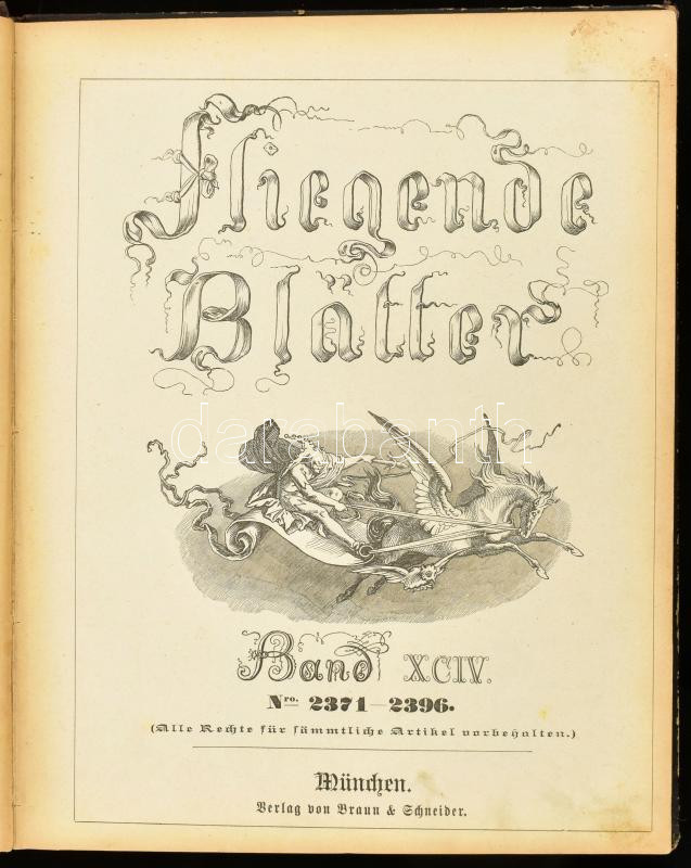 cca 1890 Fliegende Blätter XCIV. N. 2371-2398. München, é.n., Braun & Schneider, 232 p. Gazdagon illusztrált, német nyelvű, humoros kiadvány. Félvászon kötésben, kissé laza kötéssel.