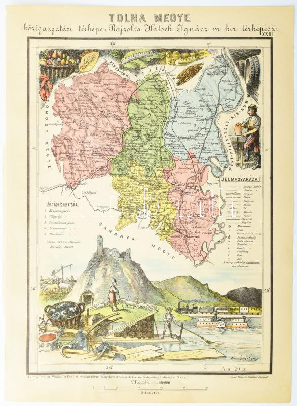 Beschreibung: Tolna vármegye közigazgatási térképe. Rajz.: Hátsek Ignác. 1:500000, Lampel, Litográfia 36x26 cm / county map Lithography