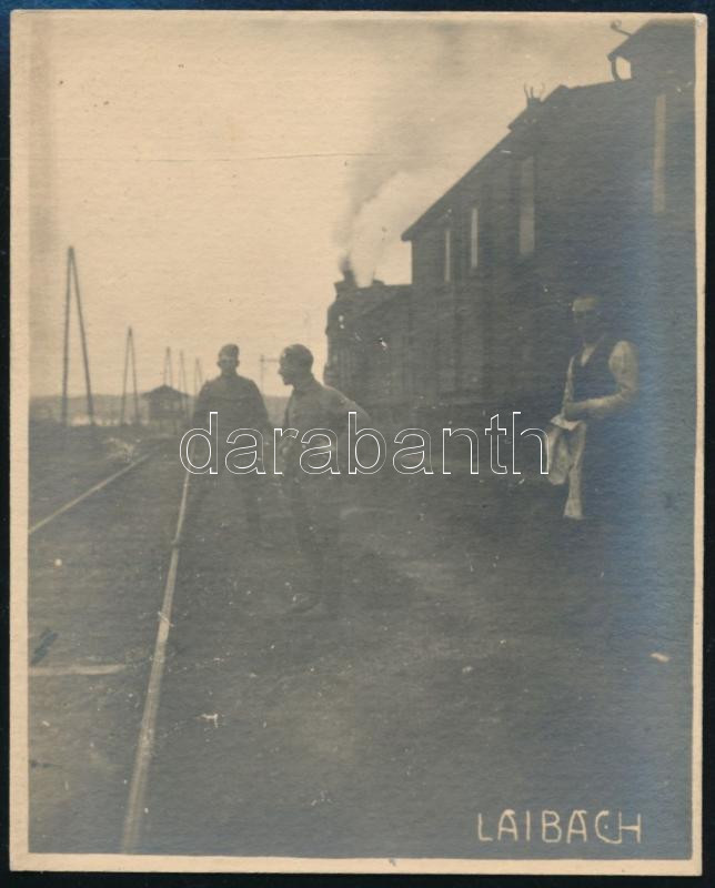 Beschreibung: 1916 K.u.k. katonai vonat a Laibach-i (Ljubljana, Szlovénia), állomáson, fotó, 10,5×8,5 cm