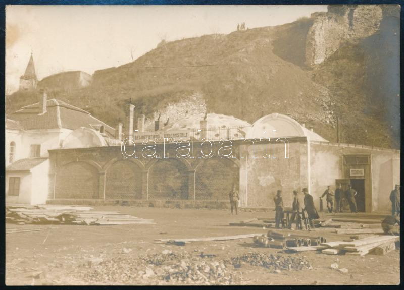 Beschreibung: cca 1916 K.u.k. fertőtlenítő állomás és fürdőhely a szerbiai Kalamegdanban a régi római fürdőben, fotó, 9×12 cm