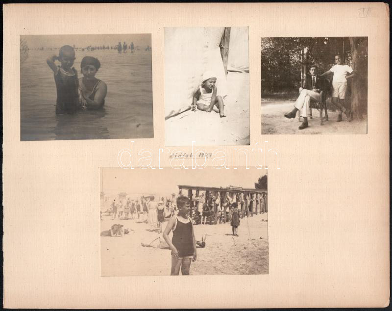 Beschreibung: 1927 Siófoki strandolók, 9 db kartonlapokra ragasztott fotó, kb. 8×11 cm-es méretben