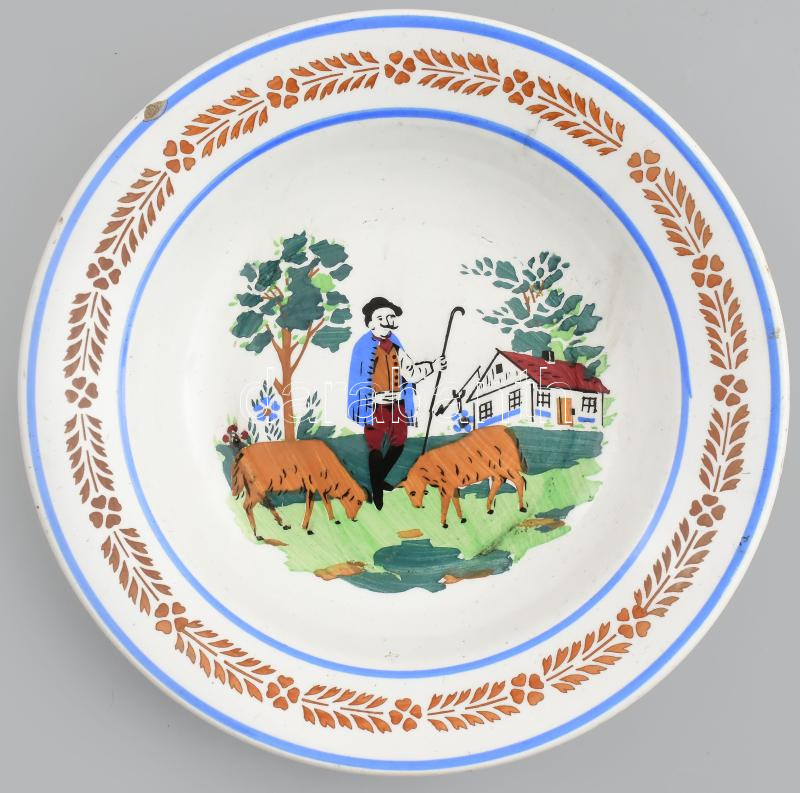 Antik fali dísztányér, népi (juhász) jelenettel, 1910-1915 körül. Máza... https://www.darabanth.com/de/453-Fernauktion/453.0/Porzellan-Keramik-Glass/Keramiken~500005/Antik-fali-disztanyer-nepi-juhasz-jelenettel-1910-1915-korul-Mazas-keramia-jelzes-nelkul-~II3016421