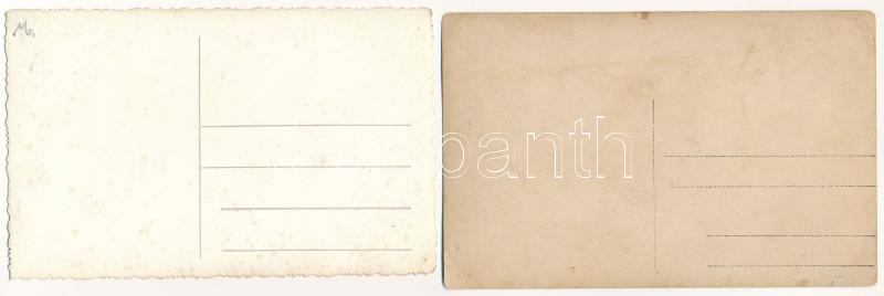 Beschreibung: Postáskisasszonyok - 2 db magyar fotó képeslap postahivatalok előtt